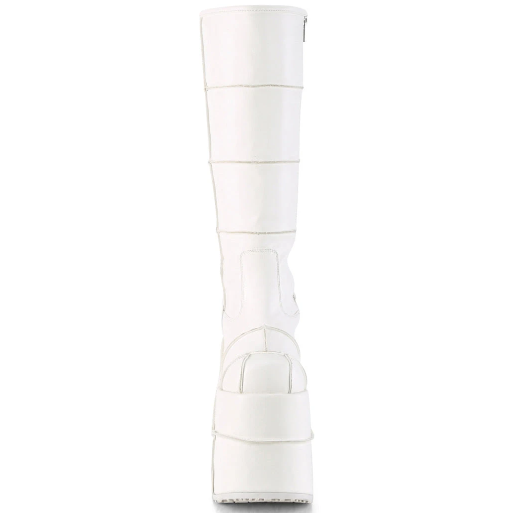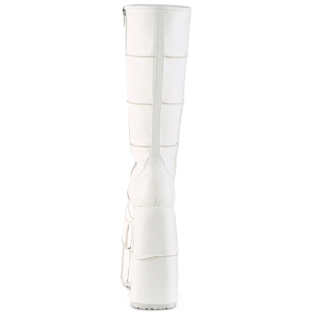 7″ (178mm) Platform Knee High Boot with Patching Details on Platform and Vamp, Inside Metal Zip Closure.