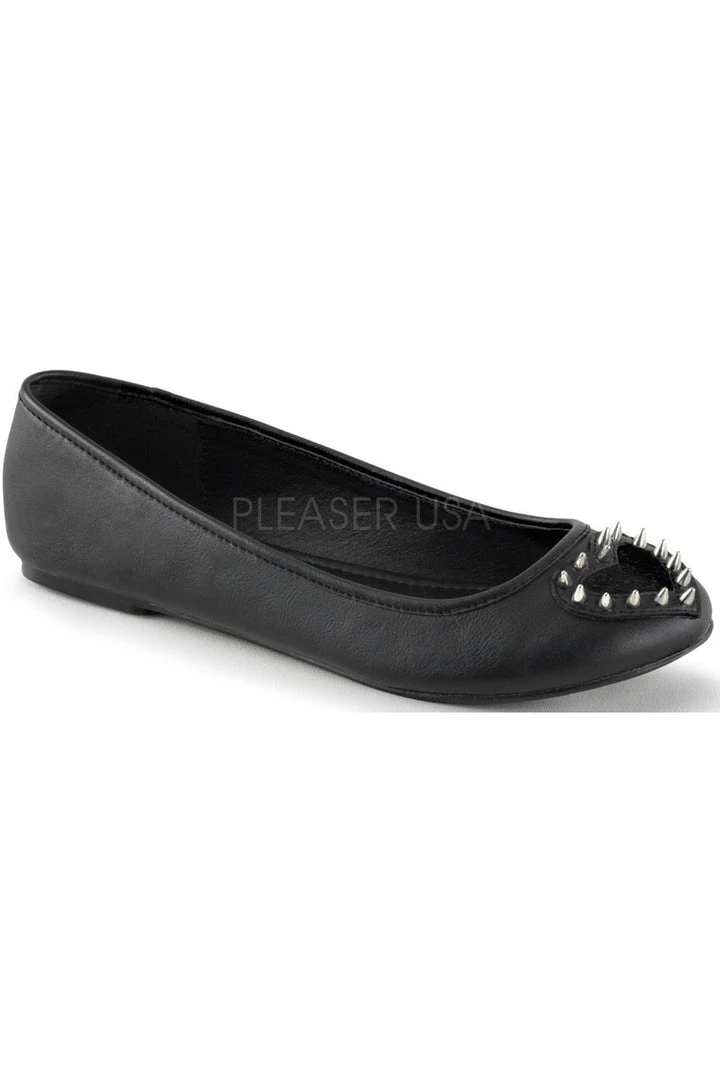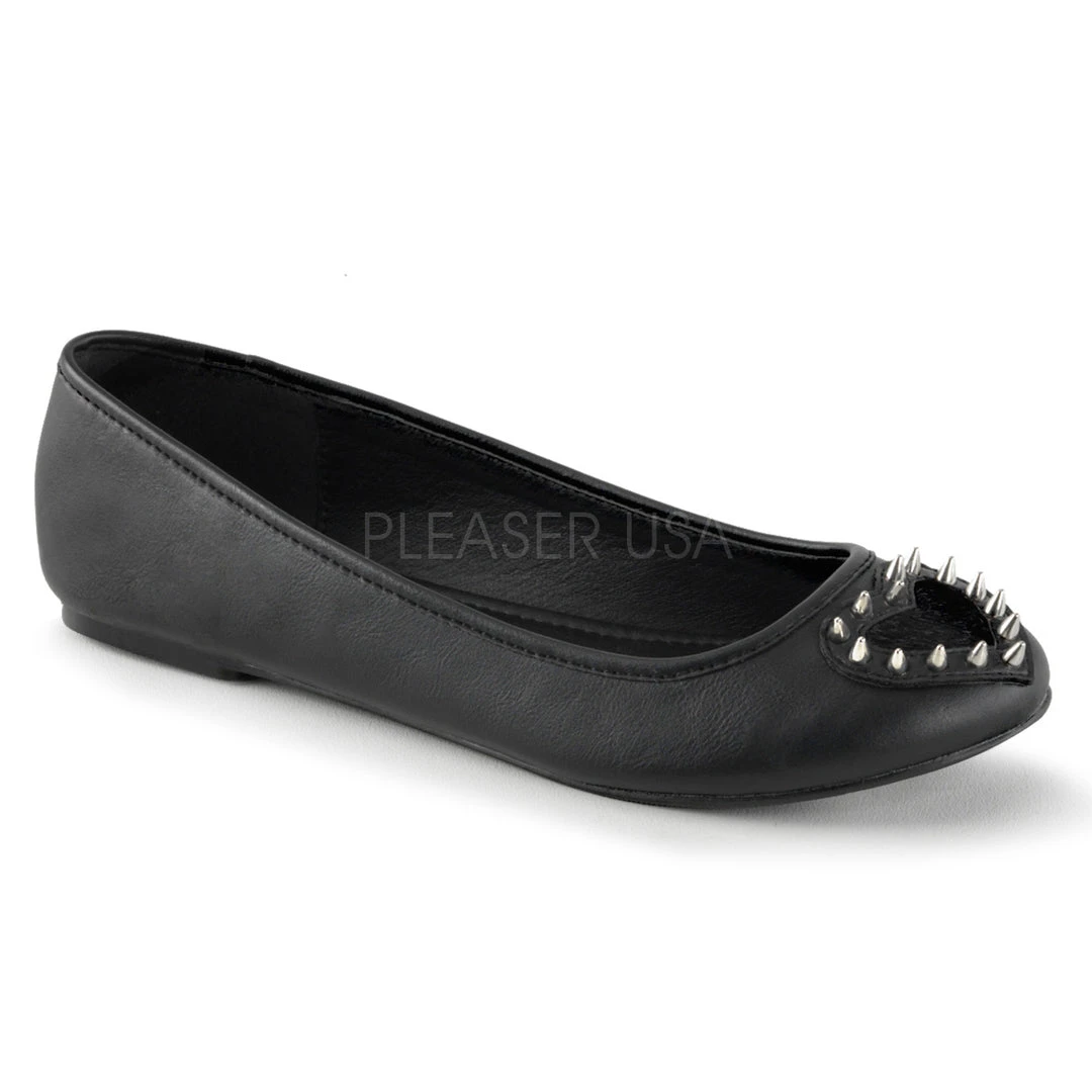 Round Toe Flat Featuring Fury Heart Cutout Design with Pointed Studs Detail.
