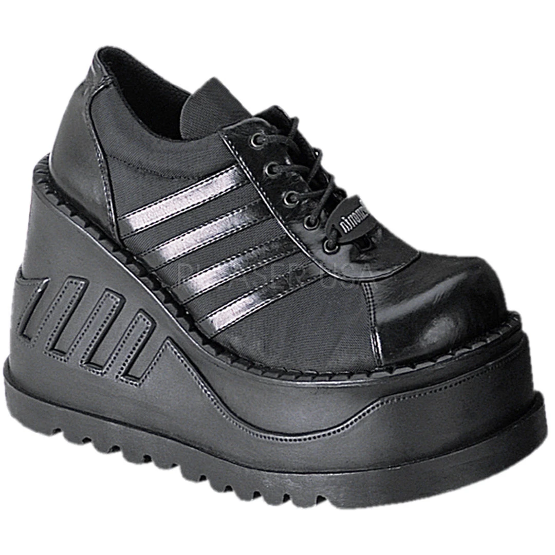 Demonia Black Vegan Leather Shoes STOMP-08.