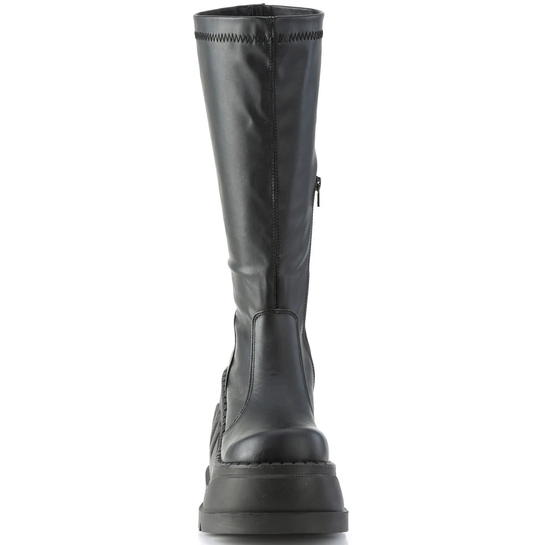 Demonia STOMP 200 Black Stretch Vegan Leather Boots.