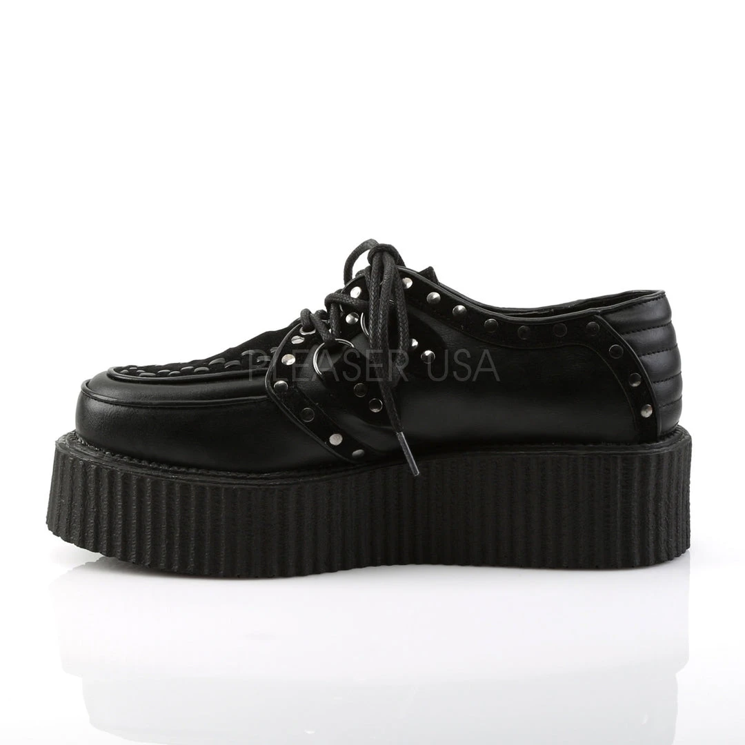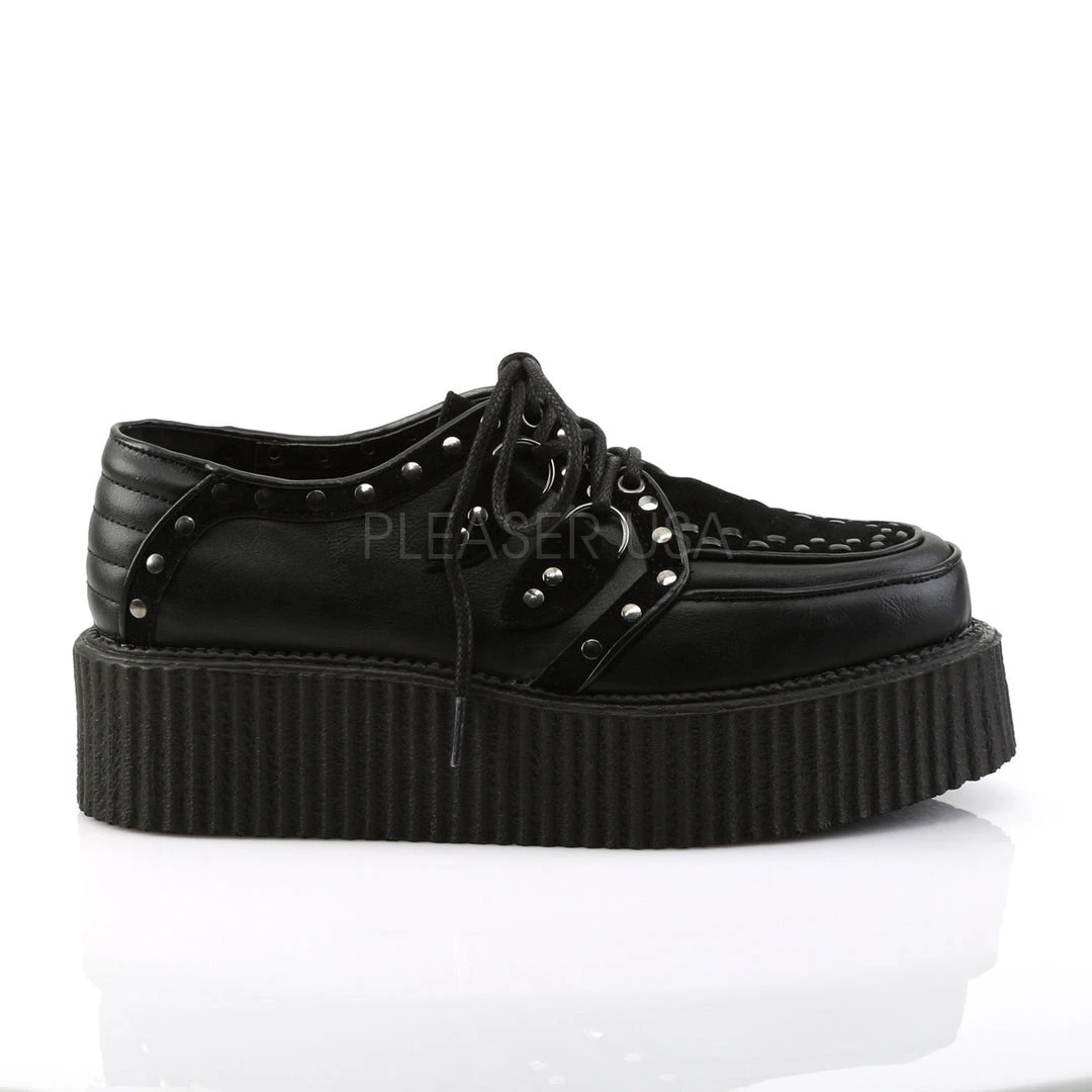 Demonia Mens Black Vegan Leather and Vegan Suede V-CREEPER-535 Shoes.