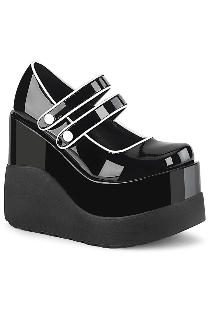 5″ (127mm) Wedge Platform Maryjane with Double Hook N’ Loop Straps, Contrast Piping and Buttons.