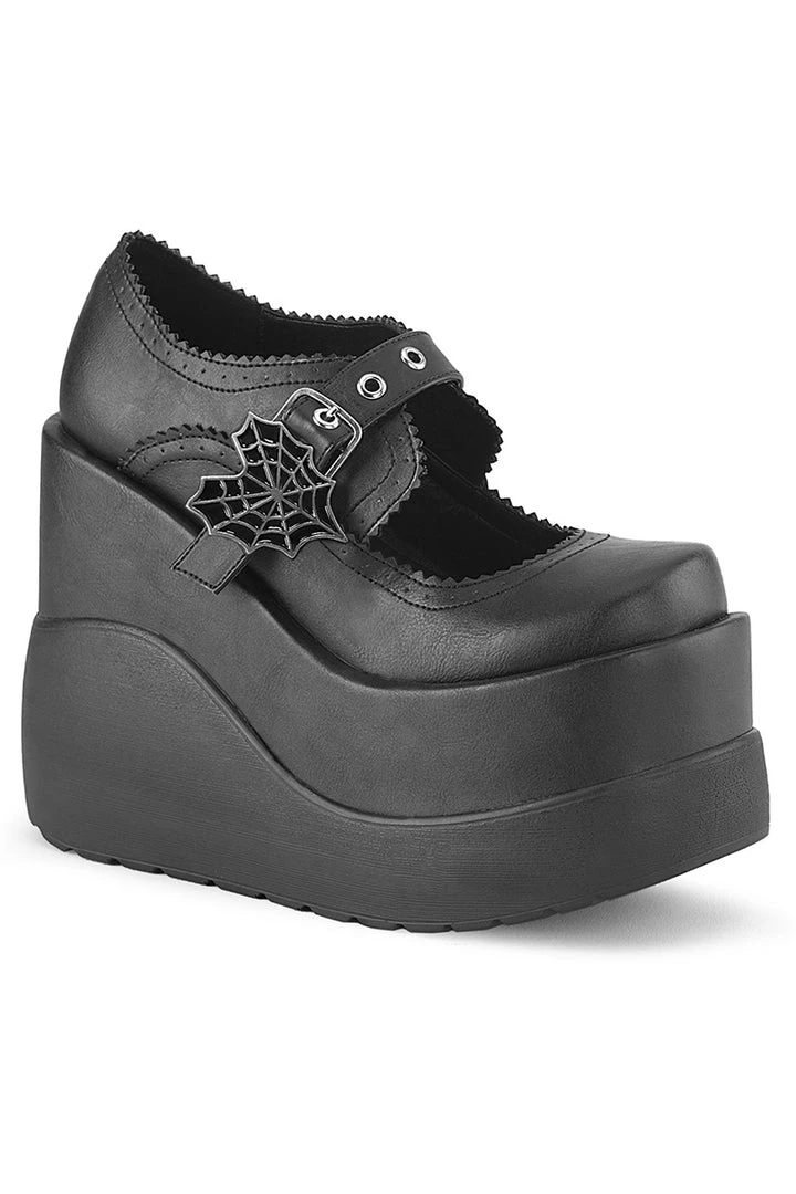 5″ (127mm) Wedge Platform Maryjane Featuring Heart Shaped Spider Web Buckle Strap and Scallop Edge Details.