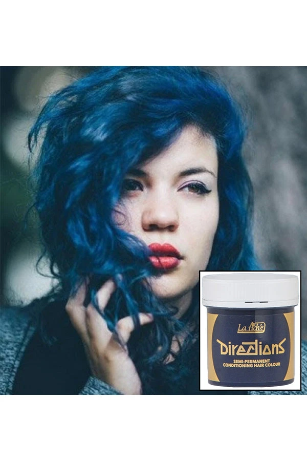 Directions Denim Blue hair dye is a rich blue that will give bleached hair a vivid velvety colour, it can also be used to add a dark blue tone to untreated hair. Directions Denim Blue is a new colour and has already become a popular seller.