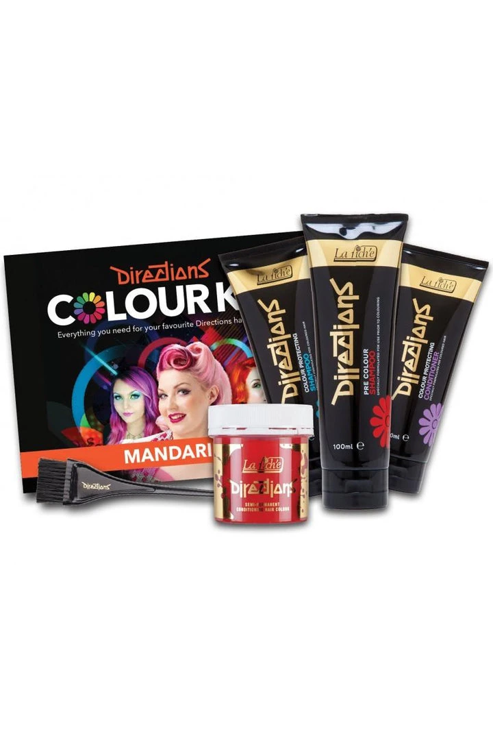 La Riche Directions Colour Kit is a beautiful and complete package. This package contains everything you need at your favourite Directions hair colour. La Riche Directions Colour Kit contains a semi-permanent colour 88ml, Pre Colour Shampoo 100ml Colour protecting shampoo 100ml Colour Protecting Conditioner 100m, a paint brush, gloves, a development cap and an instruction booklet.