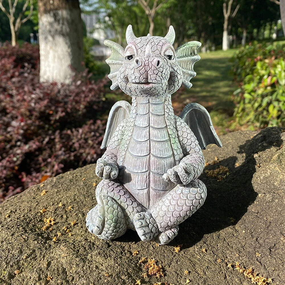This cute dragon figurine is sitting in a meditating yoga style position, waiting to bring calm to your home or garden!