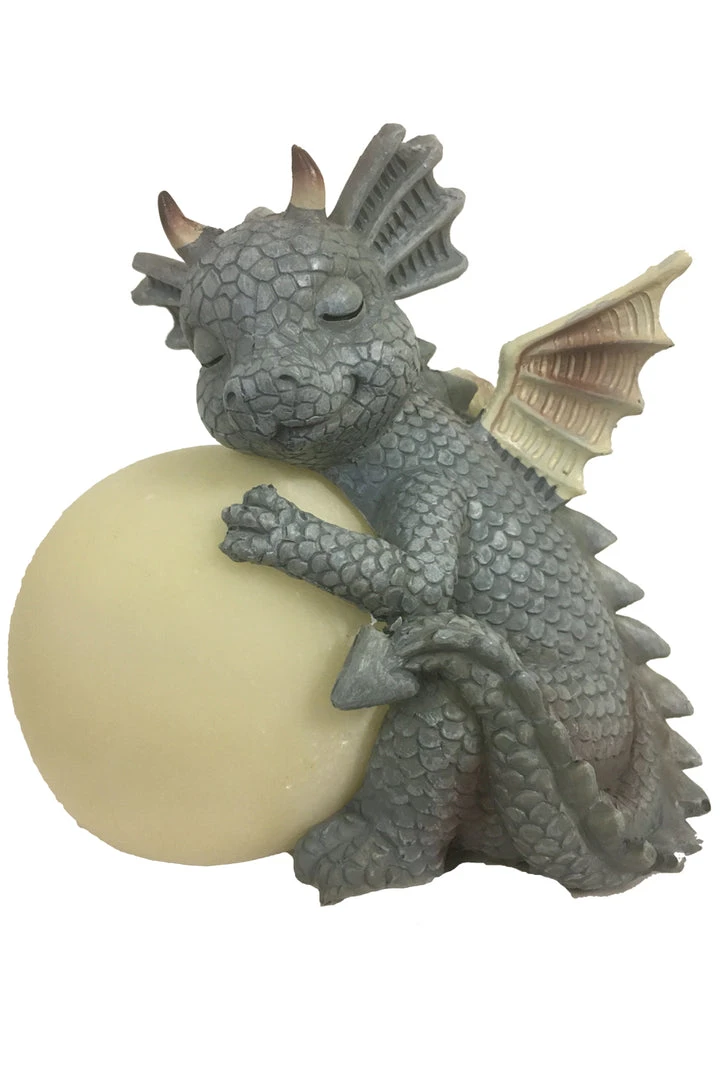 This cute dragon figurine is feeling sleepy as he rests against a light up glass globe which looks a little like the moon!