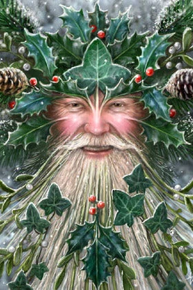 Beautiful Gothic Card with the artwork of Fantasy Artist Anne Stokes featuring design of a Father Christmas tree spirit with ivy, holly and snow coated pin cones.