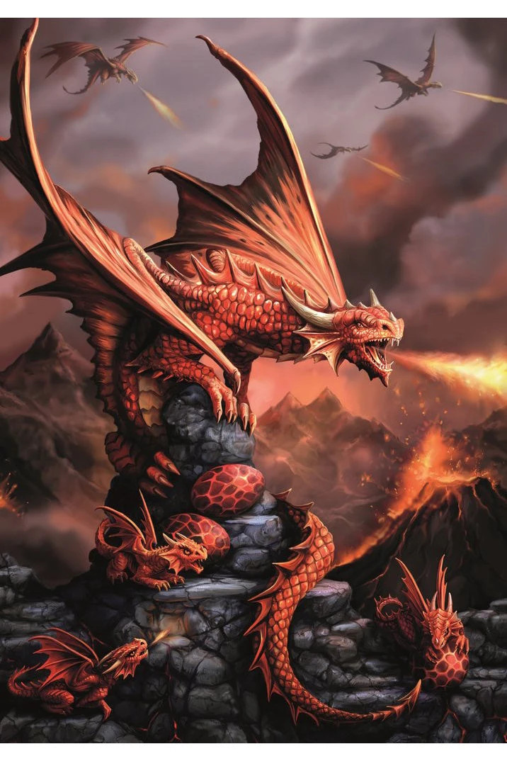 Features Fire Dragon design. A delightful Age Of Dragons card from renowned fantasy artist, Anne Stokes. Inside is a charming, relief image also by Anne and the card is left blank for the sender’s own message. Presented with a lovely envelope that was also painted by Anne. Measuring 171 x 121mm and printed on responsibly sourced card with vegetable-oil based ink.