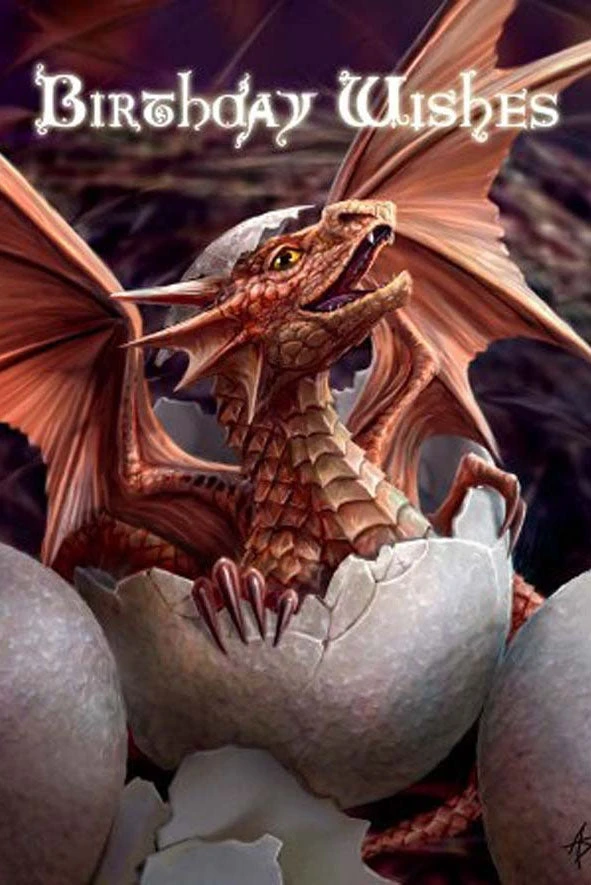 Anne Stokes Gothic Birthday Card, Birthling Hatching Baby Dragon Greetings Card