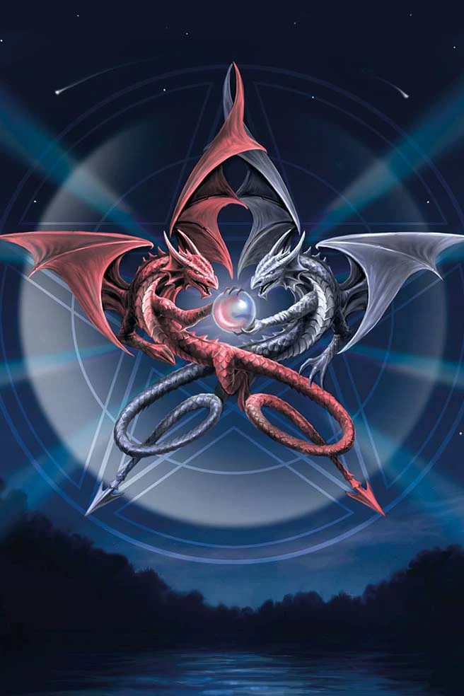 A delightful Pentagram Dragons greetings card from renowned fantasy artist, Anne Stokes. Inside is a charming, relief image also by Anne and the card is left blank for the sender’s own message. Presented with a lovely envelope that was also painted by Anne.