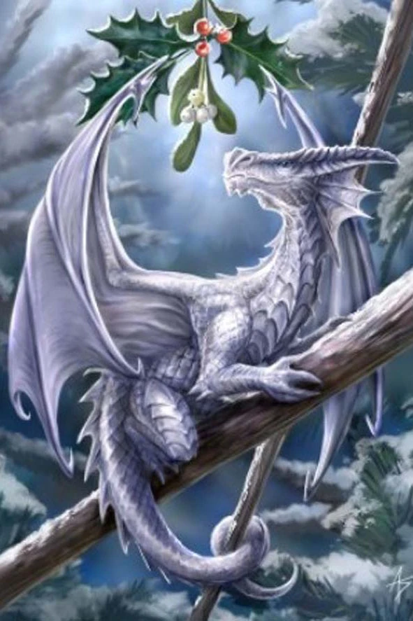 Anne Stokes Gothic Greetings Card, Snow Dragon Pagan Gothic Dragon Yule Card