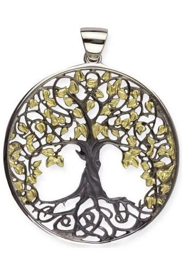 925 Sterling Silver tree of Life Pendant with Black Rhodium and Gold Rhodium Plating.
