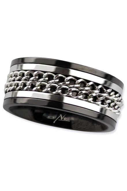 Echt Jewellery Et Nox Stainless Steel Gothic Double Chain Ring.