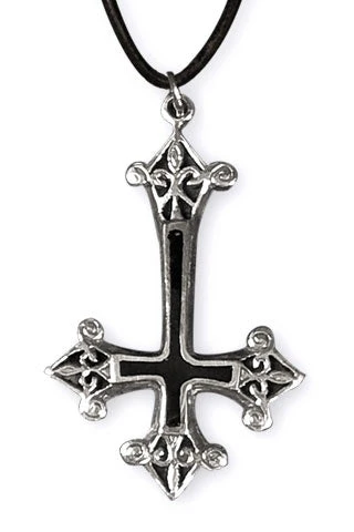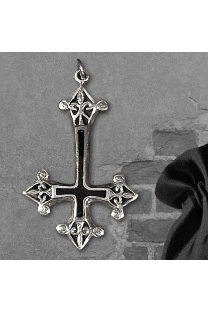 etNox – Gothic Cross Pendant ”Inverted Gothic Cross” design. This upside-down goth cross has inlaid onyx stones.