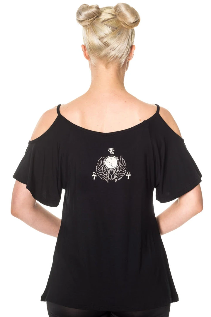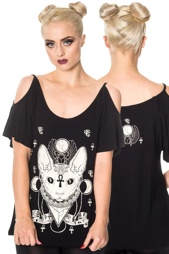 Banned Talula Gothic Top with Talula Siamese Cat and Egyptian Motif Design.