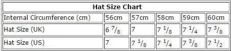 Available in sizes Small to XL – Please select a size below. Approx measurements of internal brim size are: