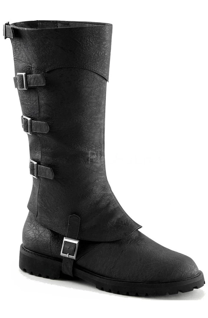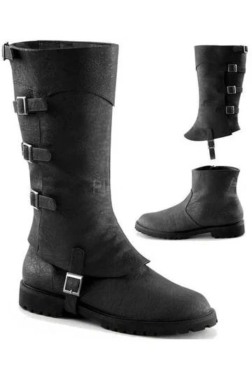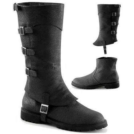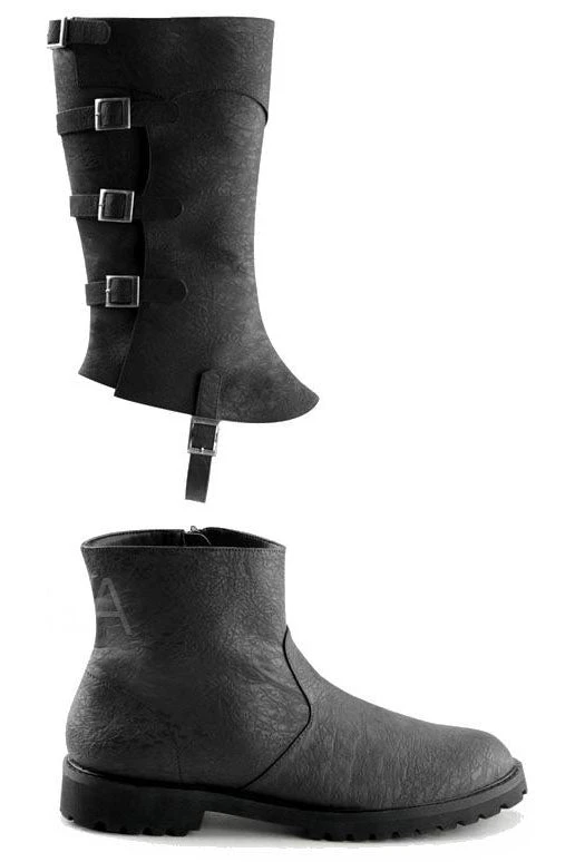 Funtasma Gotham Mens Twin Style Boots in black leather effect. Two different looks – wear the bottom boot as a standard ankle boot or attach the upper to make a riding style boot. Upper section has four buckle straps, main boot has a side zip.