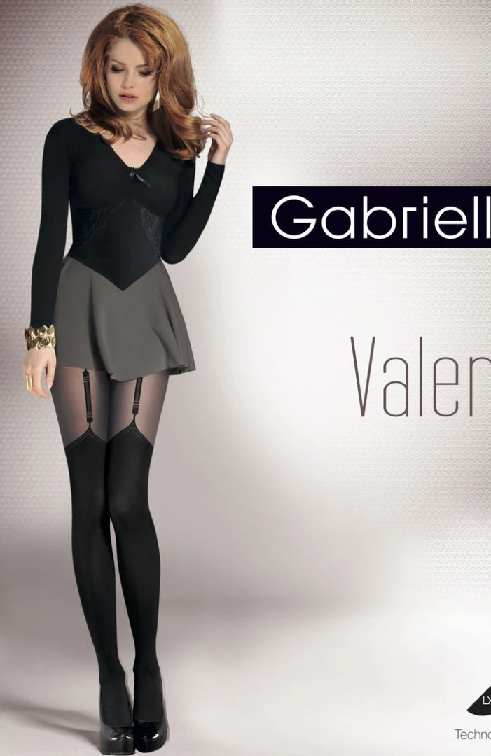 Faux stocking and suspender design tights with opaque ‘stockings’. 40 Denier.