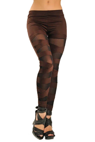 Brown Bandage Mesh Leggings.