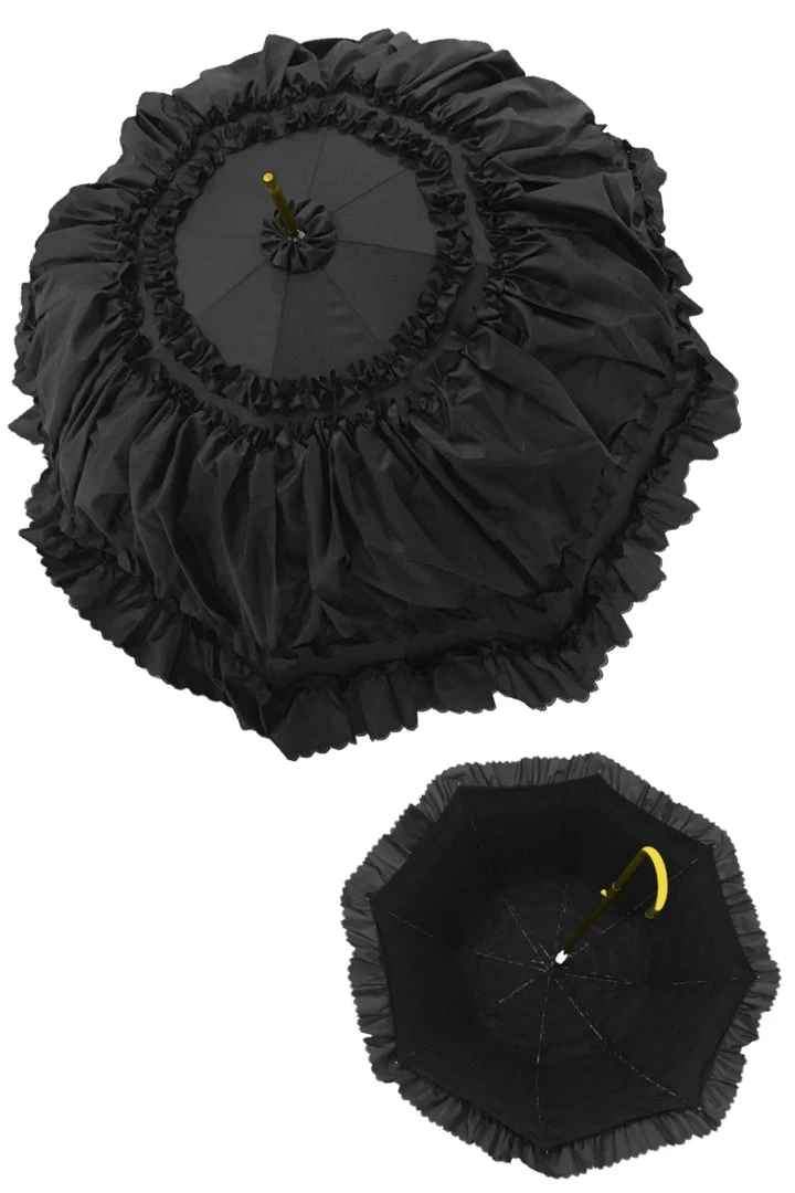 Dark in Love Black Gothic Ruffled Rainproof Umbrella / Parasol.