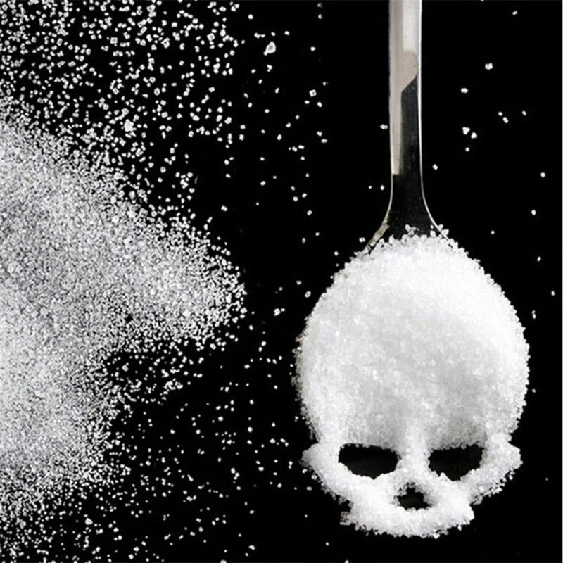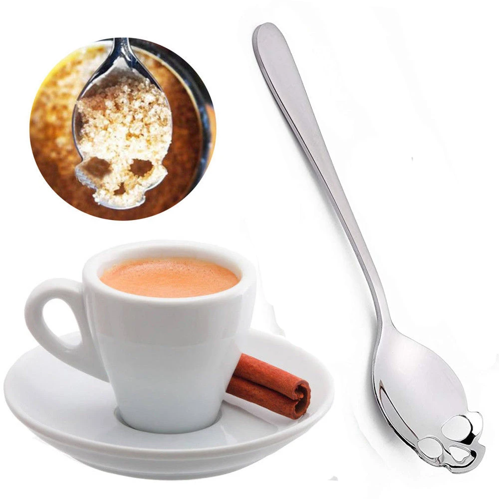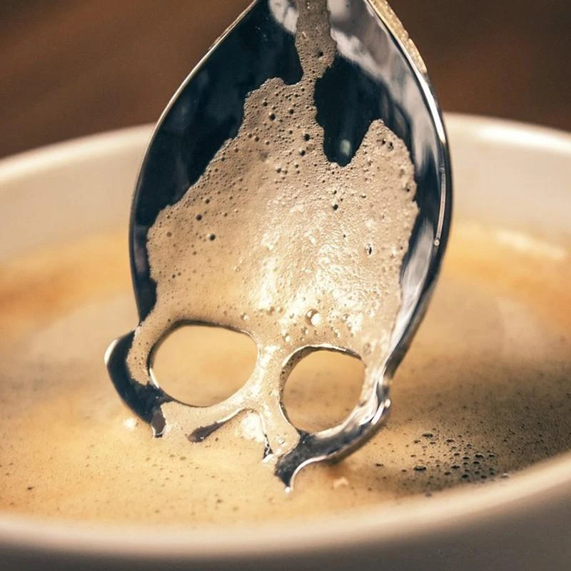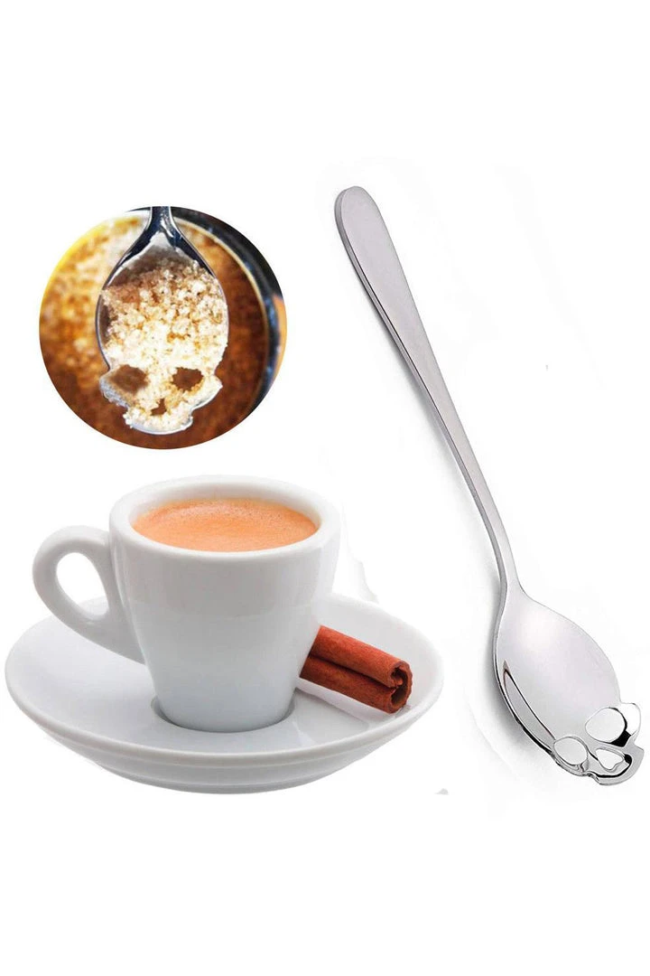 Add a darker edge to your dining with this fabulous stainless steel teaspoon in silver tone with skull shaped cut out design.
