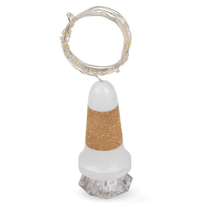 The light is rechargeable via USB so no need to worry about batteries and it features a string of 10 warm white LEDs which uncoil and feed into your bottle to create a lovely glowing effect, while the top of the light has a diamond gem shaped cap to cover the USB socket, but which also lights up and changes through a slow fade colour cycle. The cap also acts as the on/off switch by twisting.