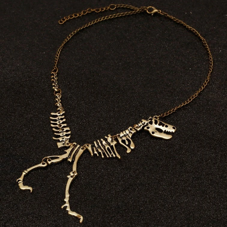 Steampunk Dinosaur Skeleton Necklace Antique Goldtone.