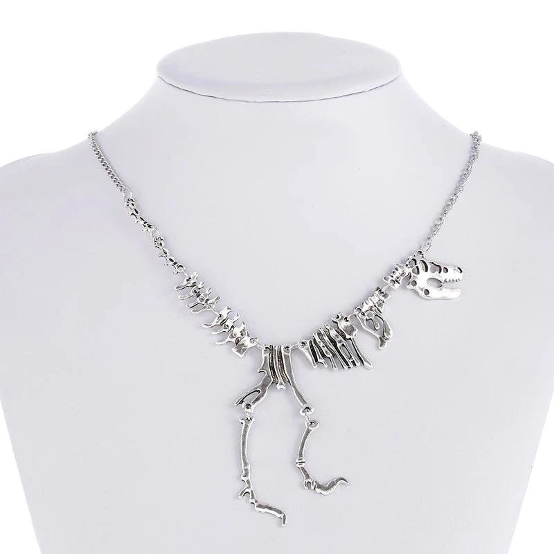 This awesome silver tone Tyrannosaurus Rex dinosaur skeleton necklace would be the perfect finishing touch for your Steampunk Dinosaur Hunter’s outfit!