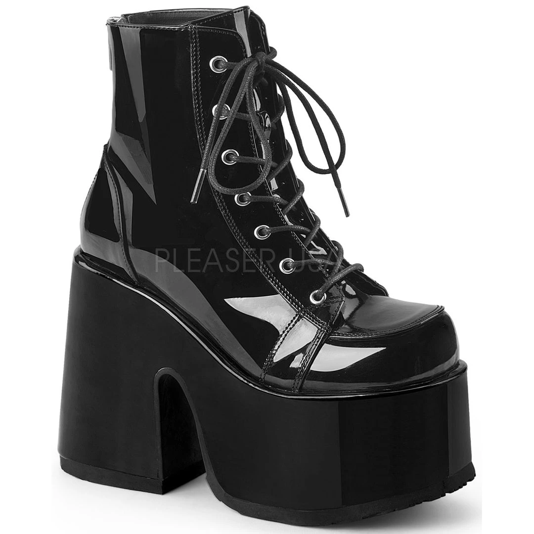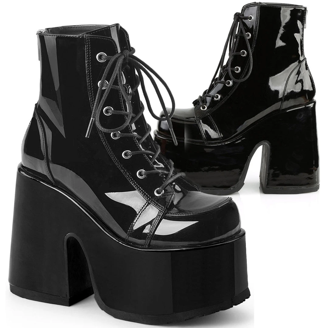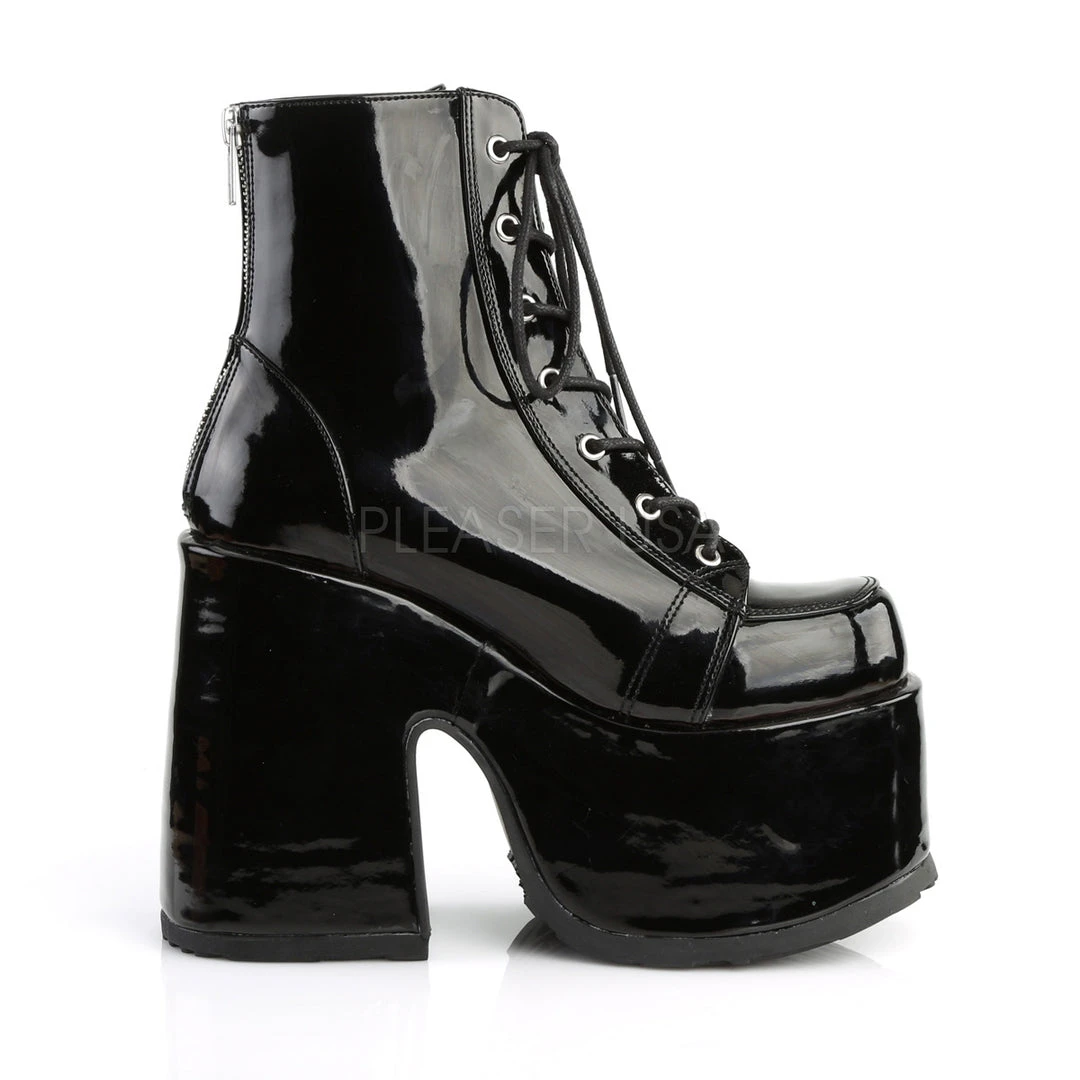 5″ (127mm) Chunky Heel, 3″ (75mm) Platform Lace-Up Ankle Boot, Metal Back Zip Closure.