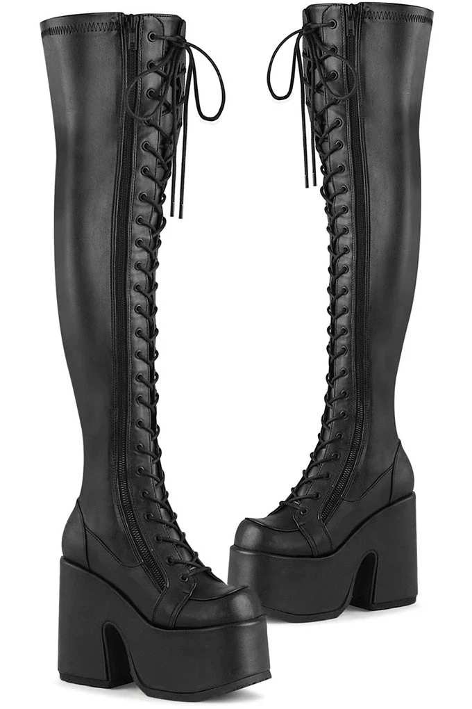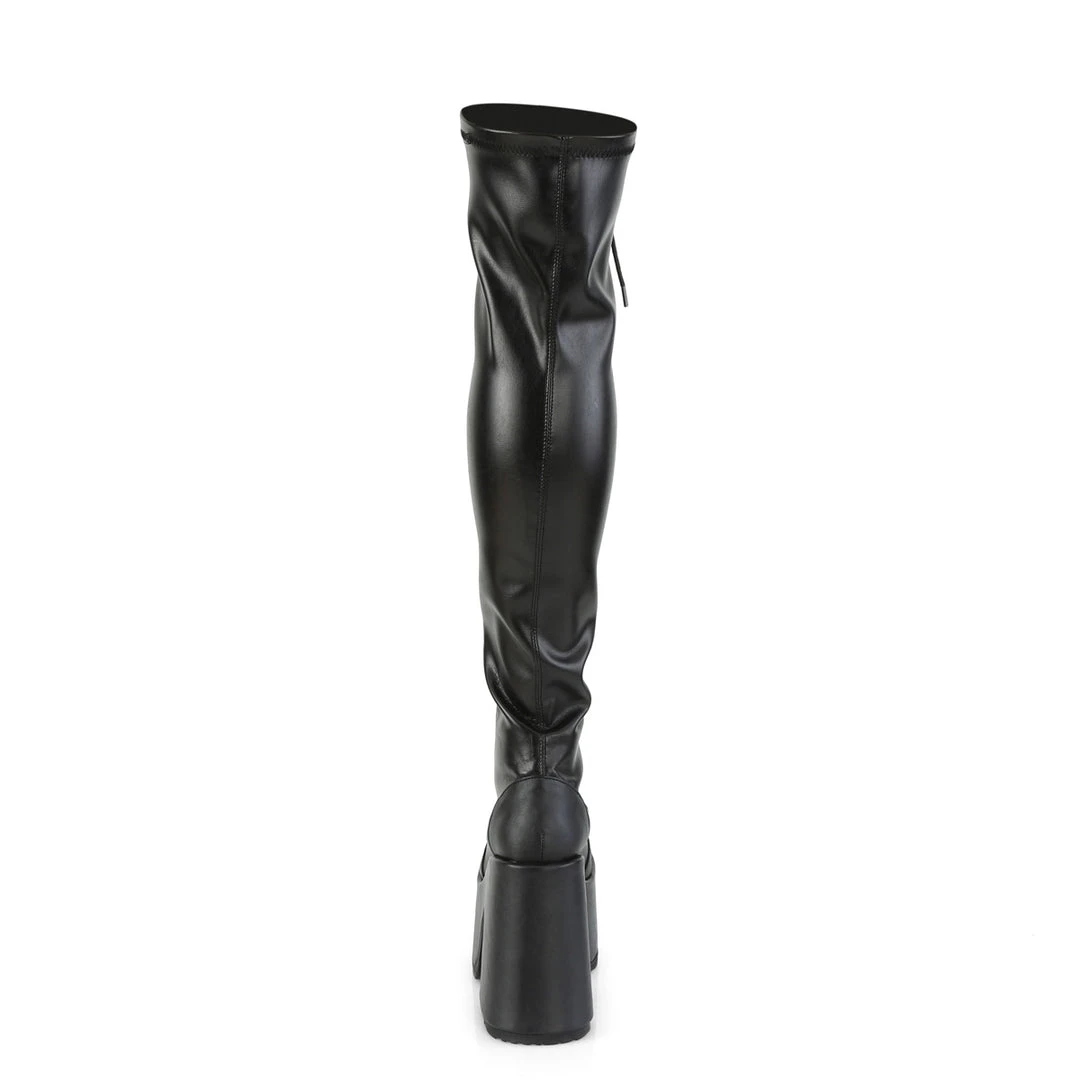 Demonia Black Stretch Vegan Leather CAMEL-300 Boots.