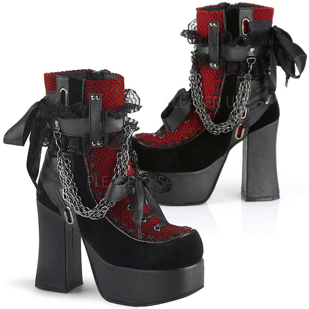 Demonia Black Red Gothic Ankle Boots CHARADE-110.