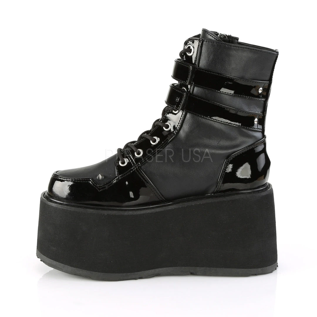 Demonia Ladies Black Vegan Leather Patent Boots DAMNED-115.