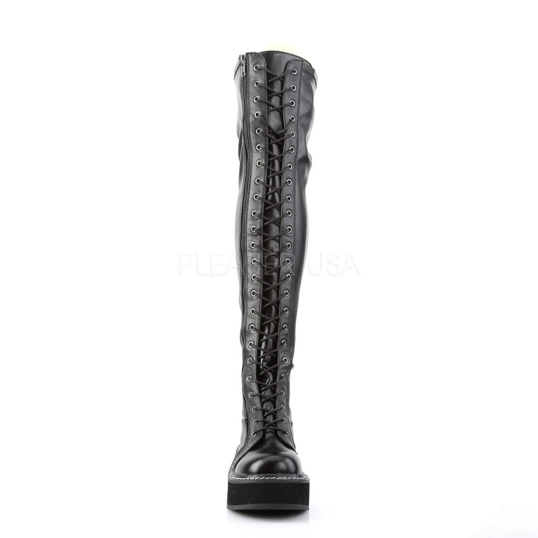 Demonia Black Stretch Vegan Leather Boots EMILY-375.
