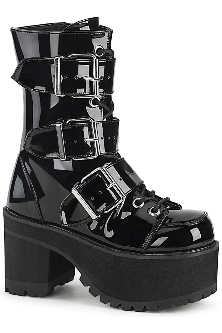 Demonia RANGER 308 Black Patent Boots.