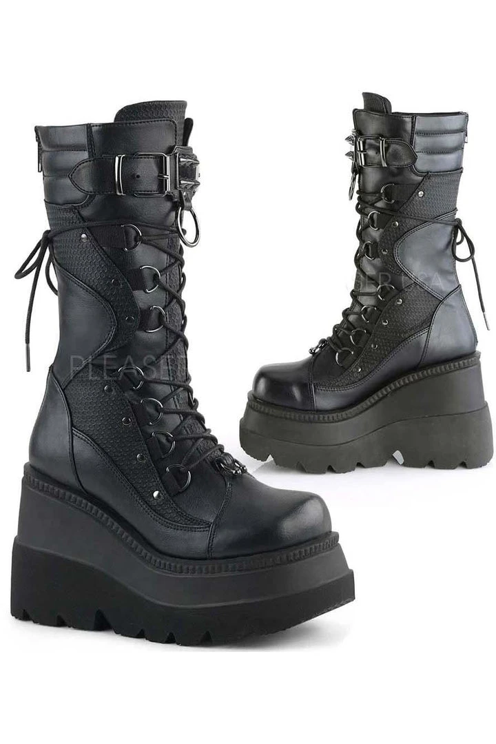 Demonia Black Vegan Leather Boots SHAKER-70.
