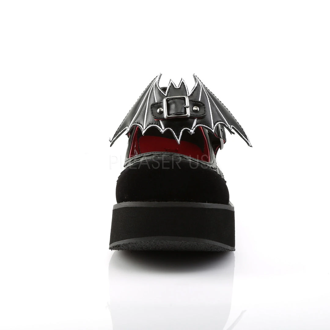 2 1/4″ (5.7cm) Platform Mary Jane Featuring Removable Embroidered Bat Cut-Out Detail On Vamp.