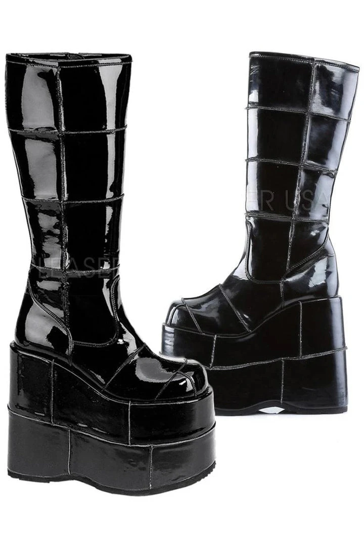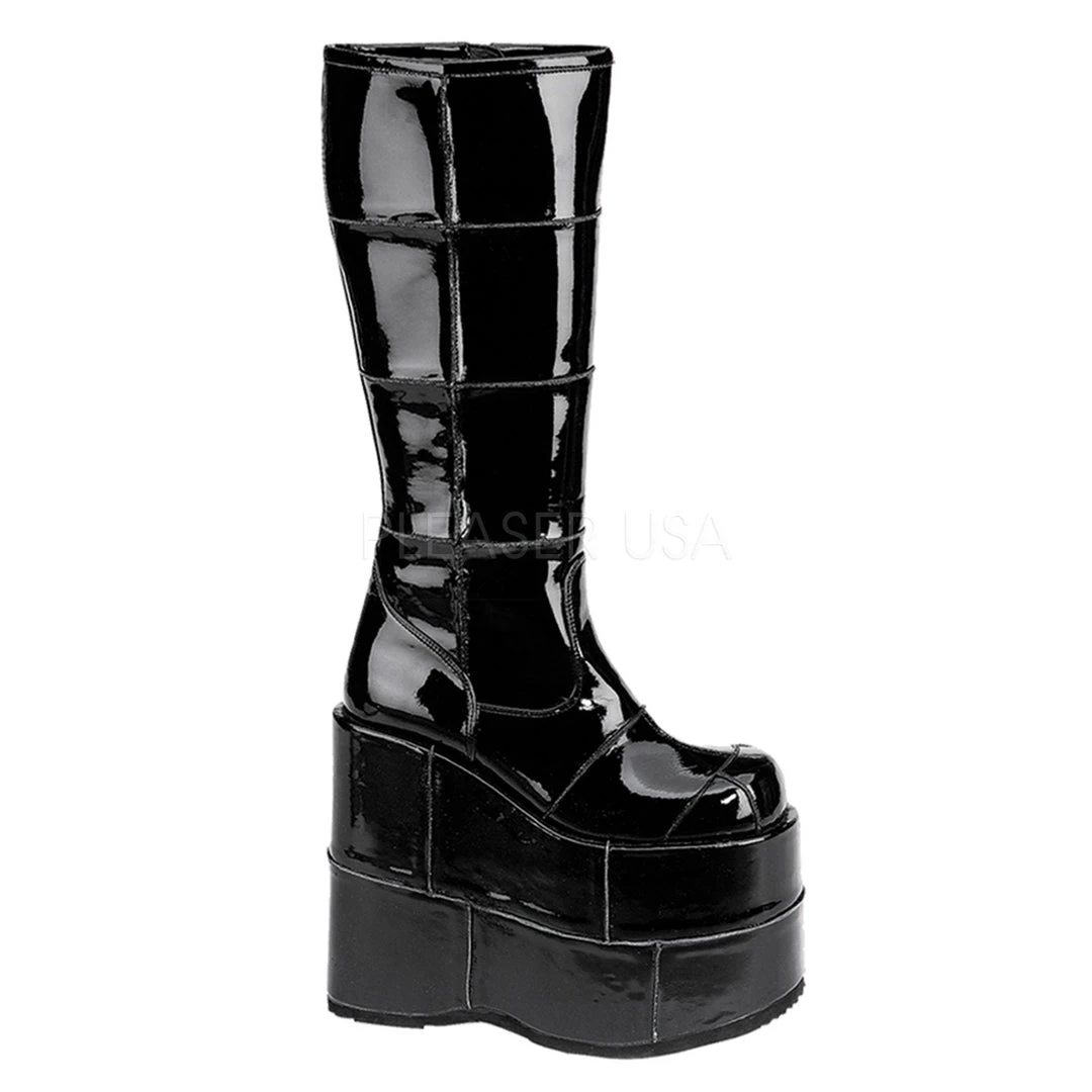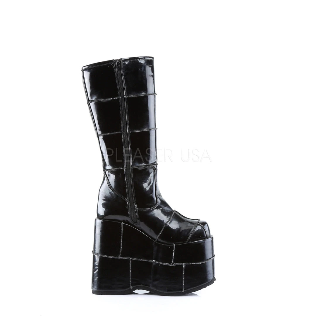 Demonia Mens Black Patent PVC STACK-301 Boots.