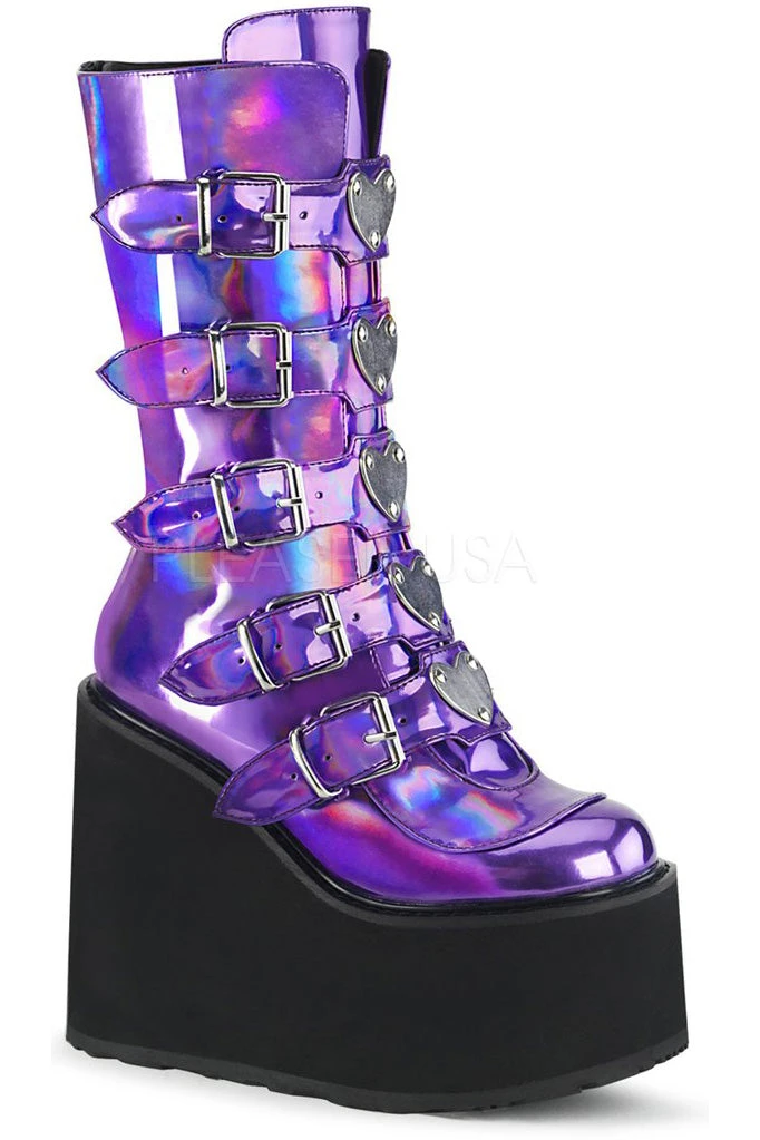 Demonia Ladies Purple Hologram SWING-230 Boots.