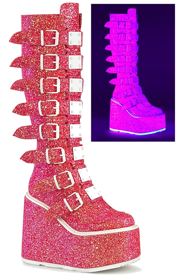 Demonia SWING 815UV Pink Glitter Boots.