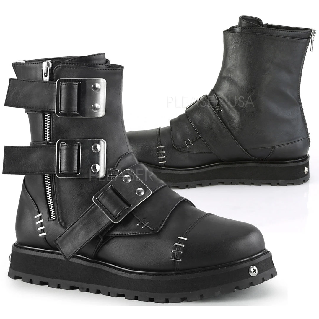 Demonia Mens Black Vegan Leather VALOR 150 Boots.