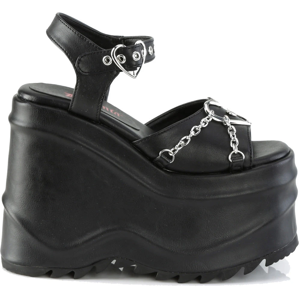 6″ (152mm) Wedge Platform Heart Buckle Ankle Strap Sandal with Heart and Chain Detail on Vamp.