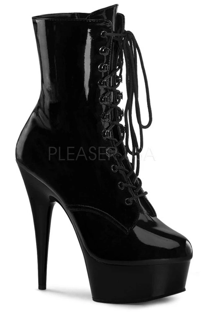 Pleaser Black Patent PVC Boots DELIGHT-1020.