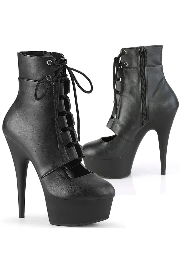 Pleaser Black Faux Leather DELIGHT-600-21 Boots.
