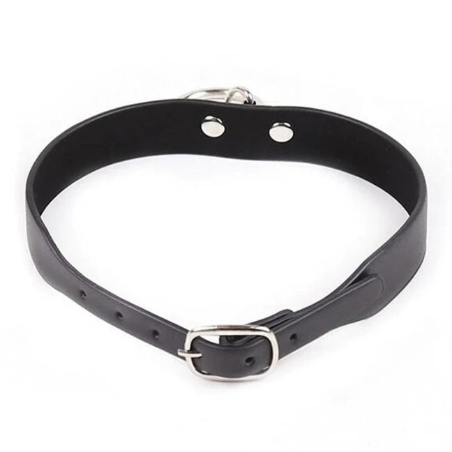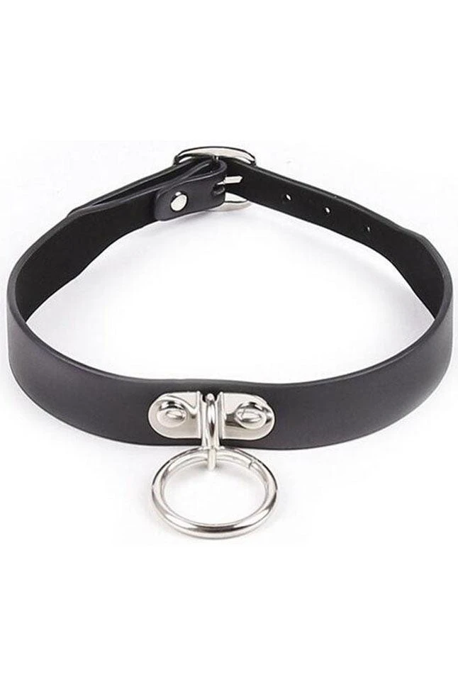 Black Faux Leather Gothic Collar with silver tone O-ring Detail.