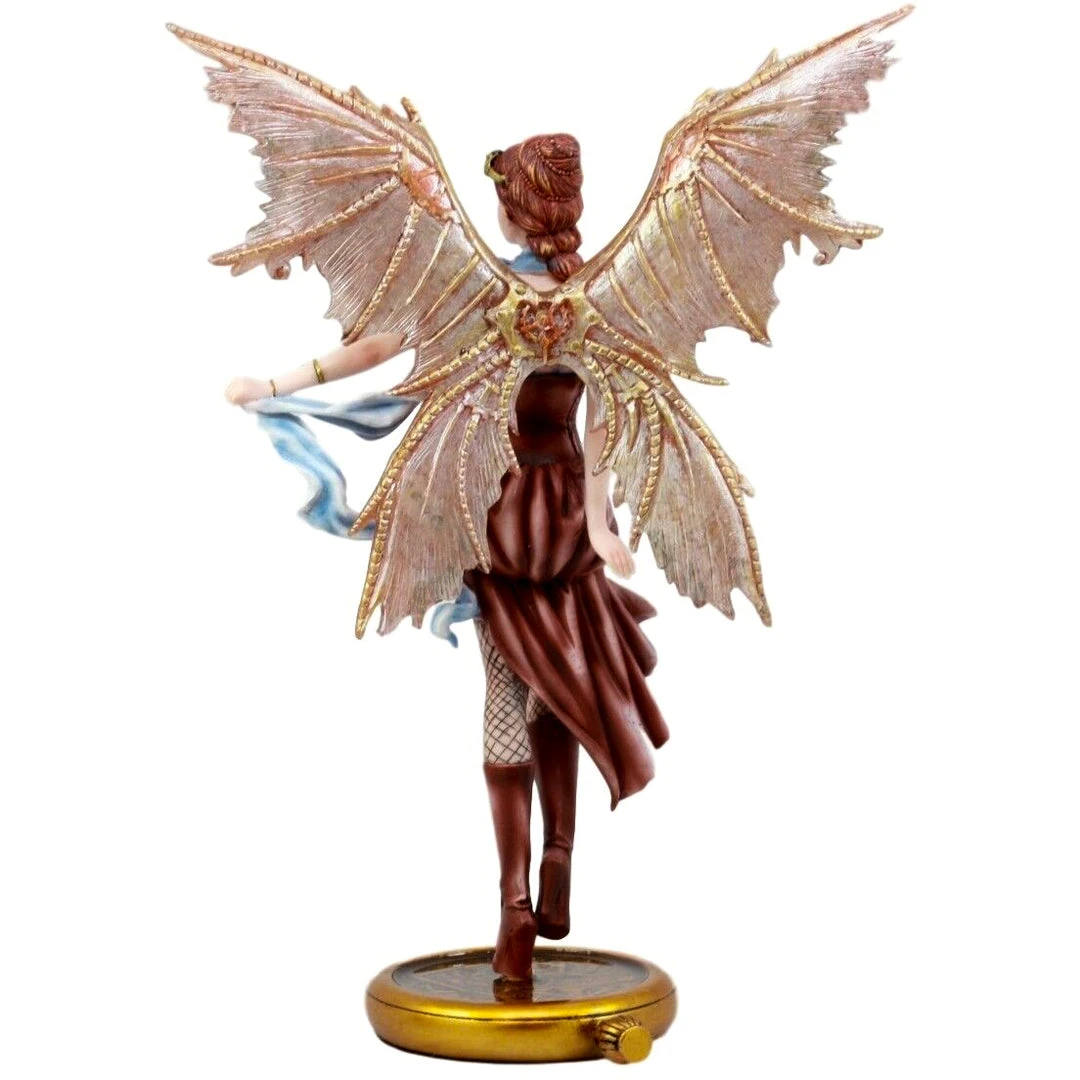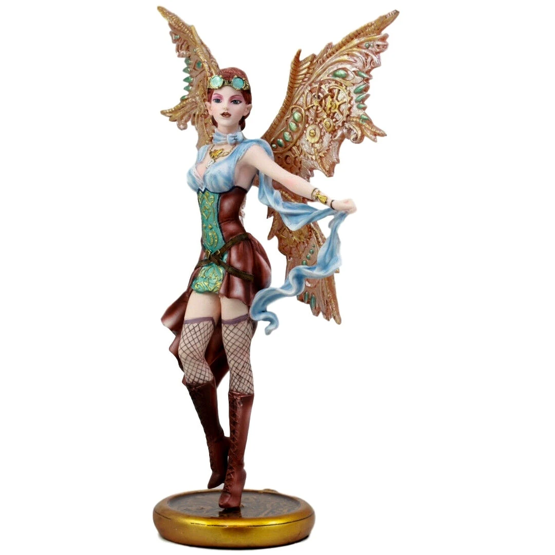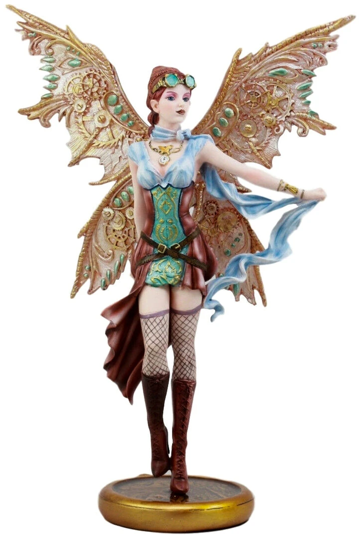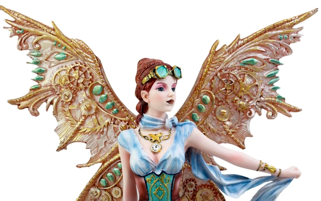 Steampunk fairy Jess. In Victorian style clothing. Gear and Cog Wings.