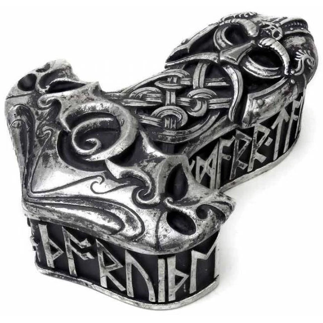 A heathen coffer under the protection of the thunder god ensuring strength, healing and fertility Carved with runes which proclaim ‘ A blessing on this hammer ‘ Let Thor be the guardian of your treasure and trinkets.