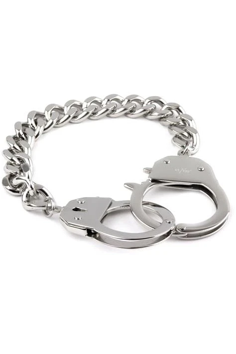 etNox – Gothic Bracelet ‘Chain and Lock’ design. This goth bracelet has two working miniature handcuffs with release catches and fastens by linking them together.