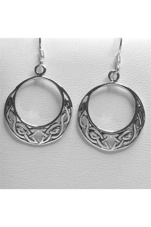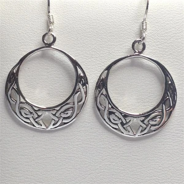 Beautiful pair of 925 Sterling Silver Round celtic knotwork crescent hoop design with sterling silver ear hooks.