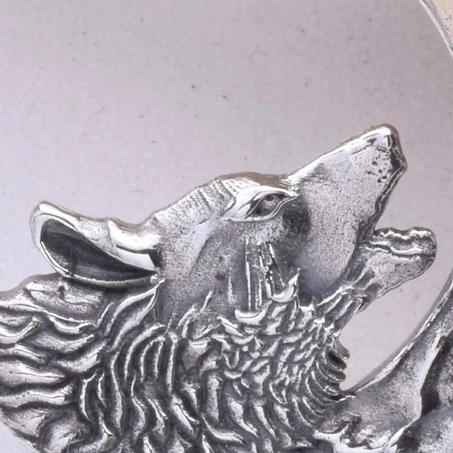Beautiful 925 Sterling Silver howl at the moon wolf pendant with an amethyst cabochon setting. (chain not included).